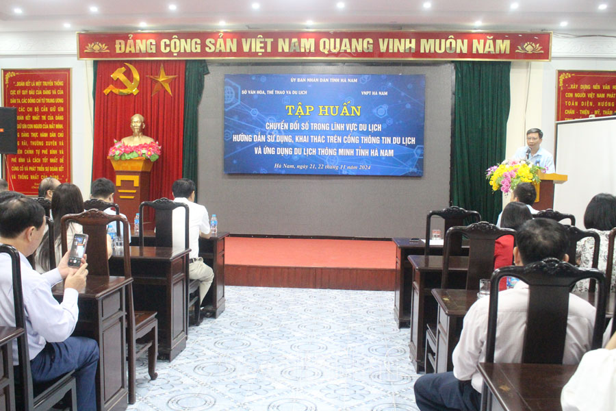 Nhằm nâng cao trình độ chuyên môn về du lịch cho cán bộ văn hóa, người quản lý doanh nghiệp kinh doanh dịch vụ du lịch, điểm du lịch trên địa bàn tỉnh và đẩy mạnh ứng dụng công nghệ thông tin, chuyển đổi số trong lĩnh vực du lịch, sáng 21/11, Sở Văn hóa, Thể thao và Du lịch phối hợp với Tập đoàn Bưu chính Viễn thông Việt Nam chi nhánh Hà Nam tổ chức tập huấn chuyển đổi số trong lĩnh vực du lịch; hướng dẫn sử dụng, khai thác trên cổng thông tin du lịch và ứng dụng du lịch thông minh Hà Nam.
