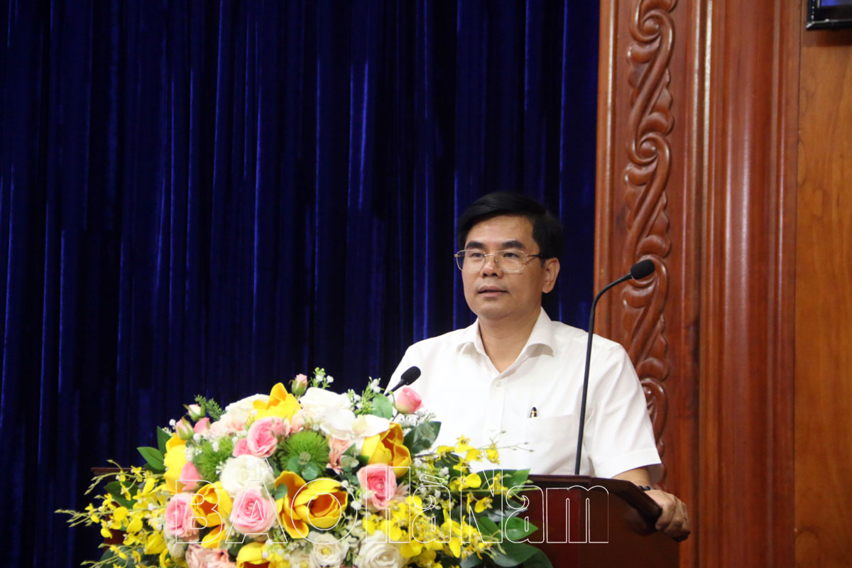 Đồng chí Nguyễn Hải Long, Tỉnh ủy viên, Phó Trưởng Ban Thường trực Ban Tuyên giáo Tỉnh ủy trực tiếp truyền đạt tại hội nghị.