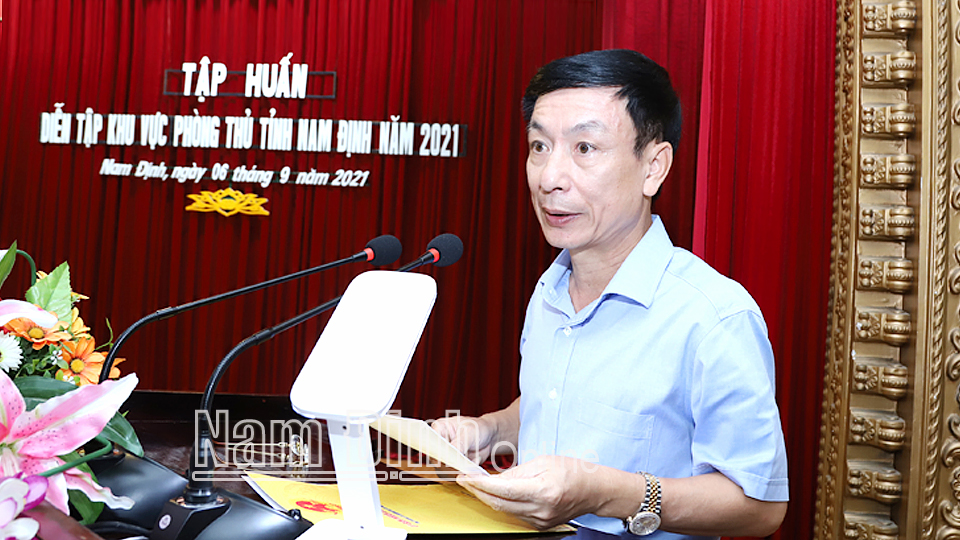 Tại hội nghị, đồng chí Đại tá Lương Văn Kiểm, Ủy viên Ban TVTU, Chỉ huy trưởng Bộ CHQS tỉnh, Phó Trưởng ban thường trực Ban Tổ chức diễn tập KVPT tỉnh công bố Quyết định của Tư lệnh Quân khu 3 về việc thành lập Ban Chỉ đạo, cơ quan Ban Chỉ đạo diễn tập KVPT tỉnh Nam Định năm 2021; Triển khai Kế hoạch diễn tập năm 2021.