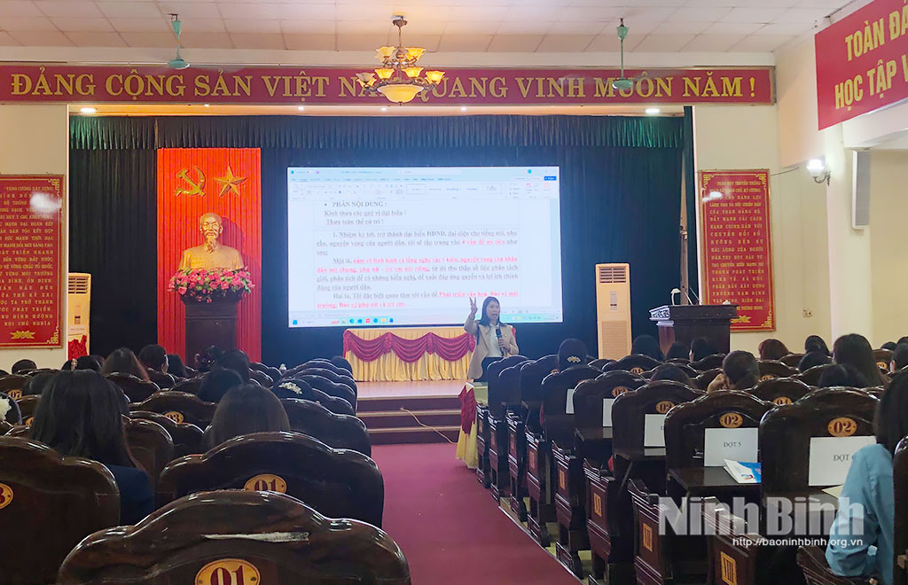 Tại hội nghị, các đại biểu được giảng viên Học viện Phụ nữ Việt Nam giới thiệu các chuyên đề chính, gồm: Các quy định của Đảng, Nhà nước về bầu cử; Vị trí, vai trò và đóng góp của nữ đại biểu dân cử; Phân tích thực tế nữ đại biểu qua các thời kỳ và vai trò của Hội LHPN các cấp trong công tác bầu cử.