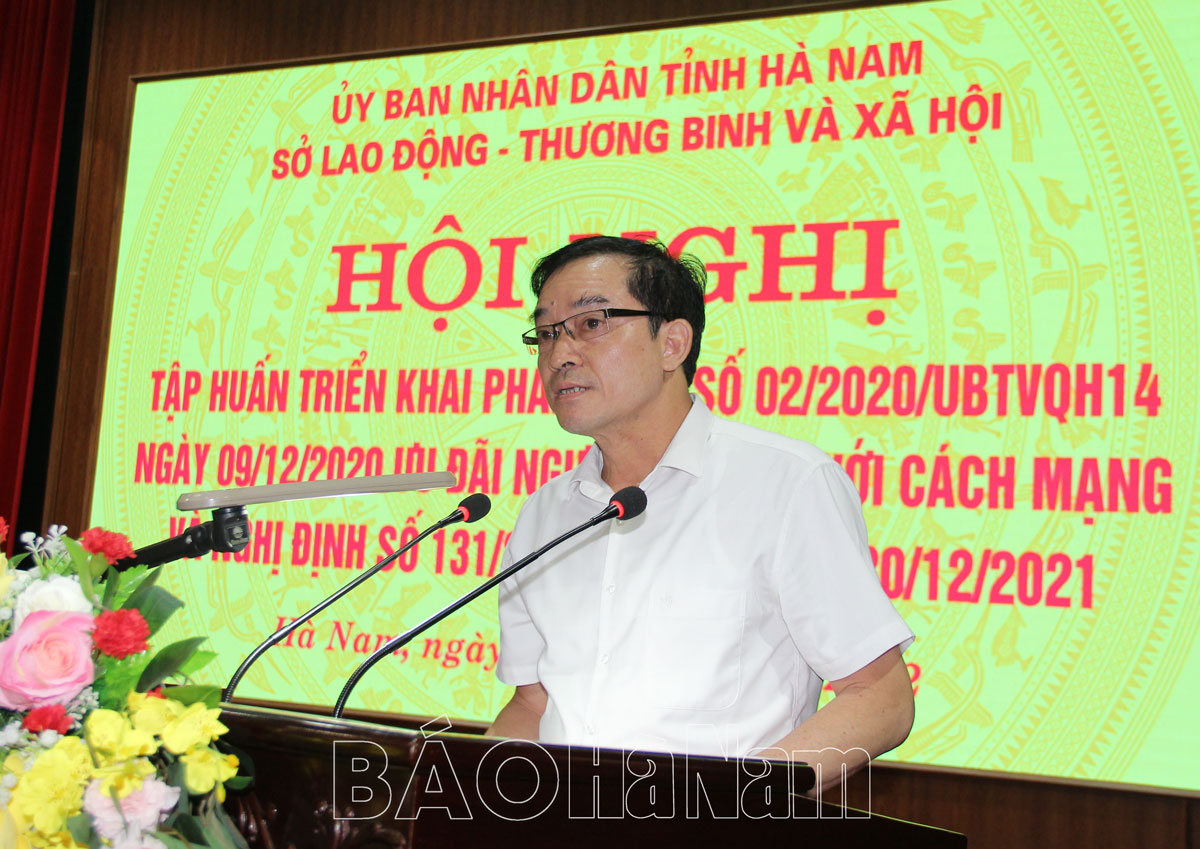 Sáng 16/9, Sở Lao động – Thương binh và Xã hội (LĐTBXH) tổ chức Hội nghị tập huấn triển khai Pháp lệnh số 02/2020/UBTVQH14 ngày 9/12/2020 Ưu đãi người có công với cách mạng và Nghị định số 131/2021/NĐ-CP ngày 30/12/2021.