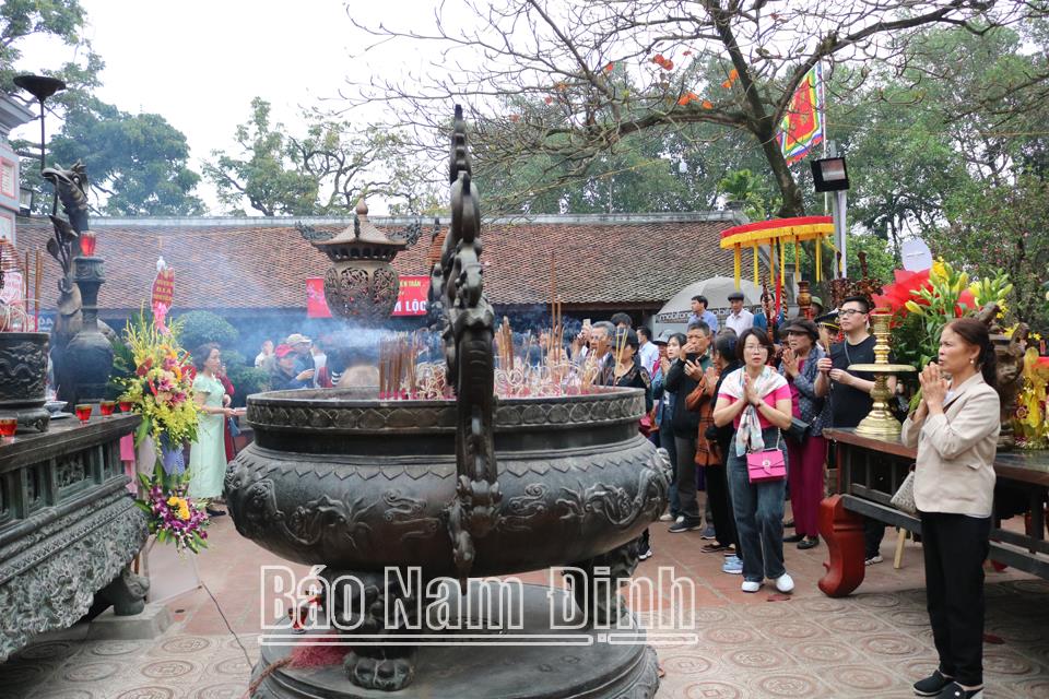 | Người dân và du khách tham quan, chiêm bái tại Đền Trần. |