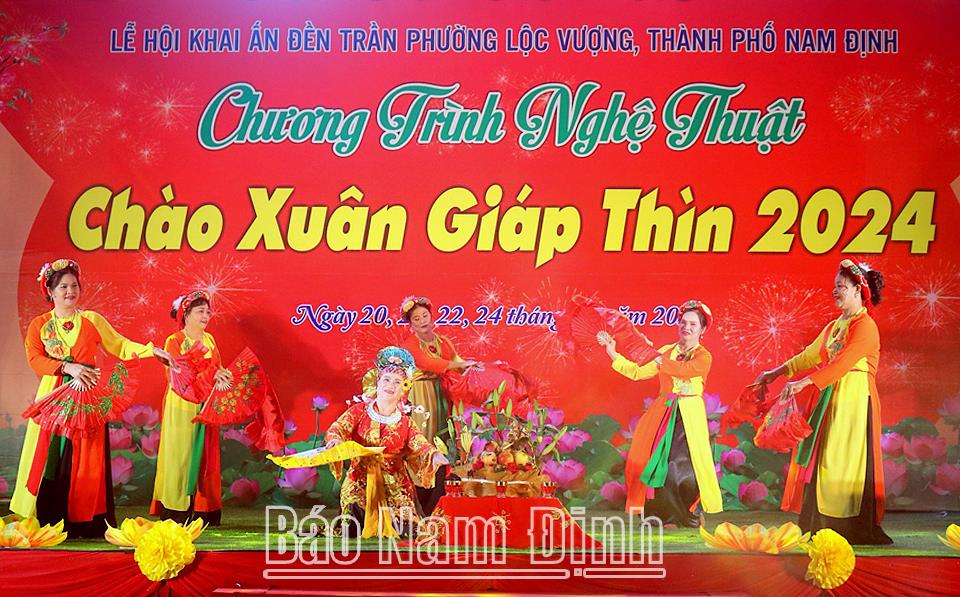 | Chương trình văn nghệ quần chúng trong Lễ hội Khai ấn Đền Trần. |