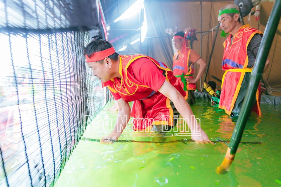 Ngay từ sáng sớm, hàng nghìn người dân trong và ngoài tỉnh đã có mặt tại Khu di tích lịch sử - văn hóa Đền Trần - Chùa Tháp tham gia các nghi lễ rước kiệu Ngọc Lộ, rước Nước, tế Cá theo phong tục tập quán của địa phương. Trong Lễ hội Khai ấn Đền Trần năm nay, Ban tổ chức lễ hội bố trí trong không gian mở tại Quảng trường Đông A Khu trung tâm lễ hội Trần thuộc Khu di tích lịch sử - văn hóa Đền Trần - Chùa Tháp tổ chức nhiều hoạt động văn hóa, văn nghệ, thể thao, du lịch, trưng bày, triển lãm sôi nổi, hấp dẫn, thu hút đông đảo người dân và du khách về dự. Cảm nhận chung của người dân khi tham dự Lễ hội Khai ấn năm nay là công tác tổ chức được làm bài bản, quy củ; môi trường, cảnh quan sạch sẽ, thoáng đãng. Chị Trần Ngọc Lan, du khách từ Hải Phòng cho biết: Năm nào gia đình tôi cũng đi lễ Đền Trần đầu Xuân. Những năm gần đây, các hoạt động dịch vụ quanh Đền Trần được quản lý chặt chẽ, không xảy ra tình trạng chặt chém, chèo kéo khách, cũng không còn hình ảnh ăn xin, ăn mày nhếch nhác chèo kéo du khách.
