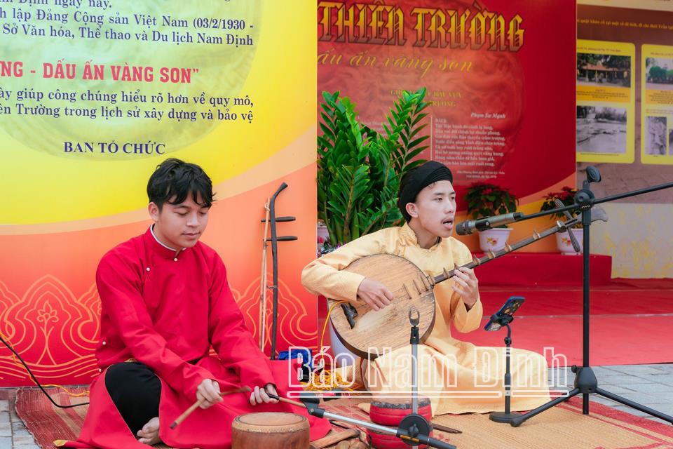 | Trình diễn hát xẩm tại Lễ hội Khai ấn Đền Trần. |