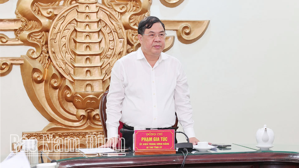 | Đồng chí Bí thư Tỉnh ủy Phạm Gia Túc phát biểu kết luận cuộc họp. |