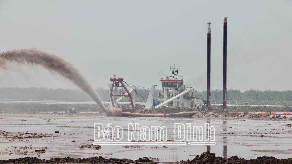 | Thi công san lấp mặt bằng để xây dựng dự án đầu tiên trong chuỗi dự án quy mô lớn của Tập đoàn Xuân Thiện tại Cồn Xanh (Nghĩa Hưng). |
