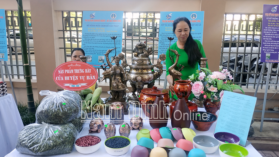 | Gian hàng trưng bày sản phẩm OCOP tiêu biểu của các doanh nghiệp huyện Vụ Bản. |