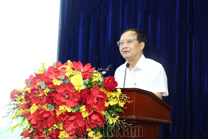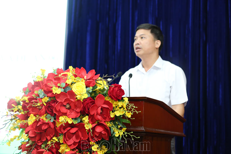 Đồng chí Phạm Văn Quân, Phó Chủ tịch UBND thành phố Phủ Lý phát biểu tham luận tại hội nghị.