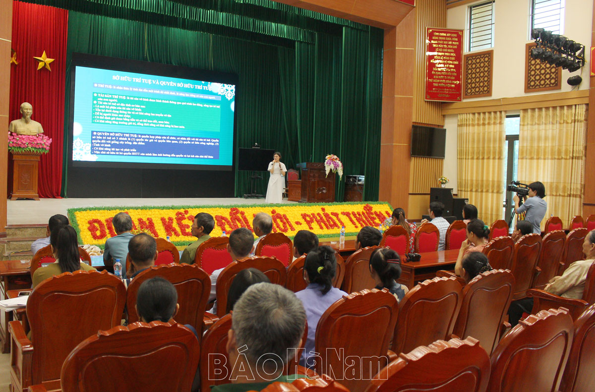 Cán bộ Sở Khoa học và Công nghệ truyền đạt nội dung tổng quan về sở hữu trí tuệ; pháp luật sở hữu trí tuệ đối với nhãn hiệu.