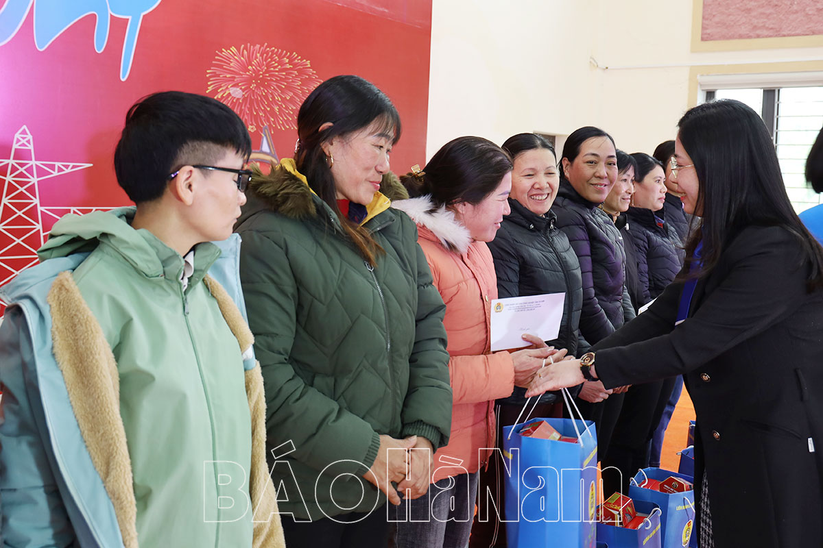 Đồng thời, chỉ đạo các công đoàn cơ sở chủ động phối hợp với người sử dụng lao động tổ chức “Tết sum vầy - Xuân chia sẻ” và các hoạt động chăm lo, tặng quà Tết tại doanh nghiệp để mọi CNLĐ đều được đón Tết vui vẻ, đầm ấm, hạnh phúc.