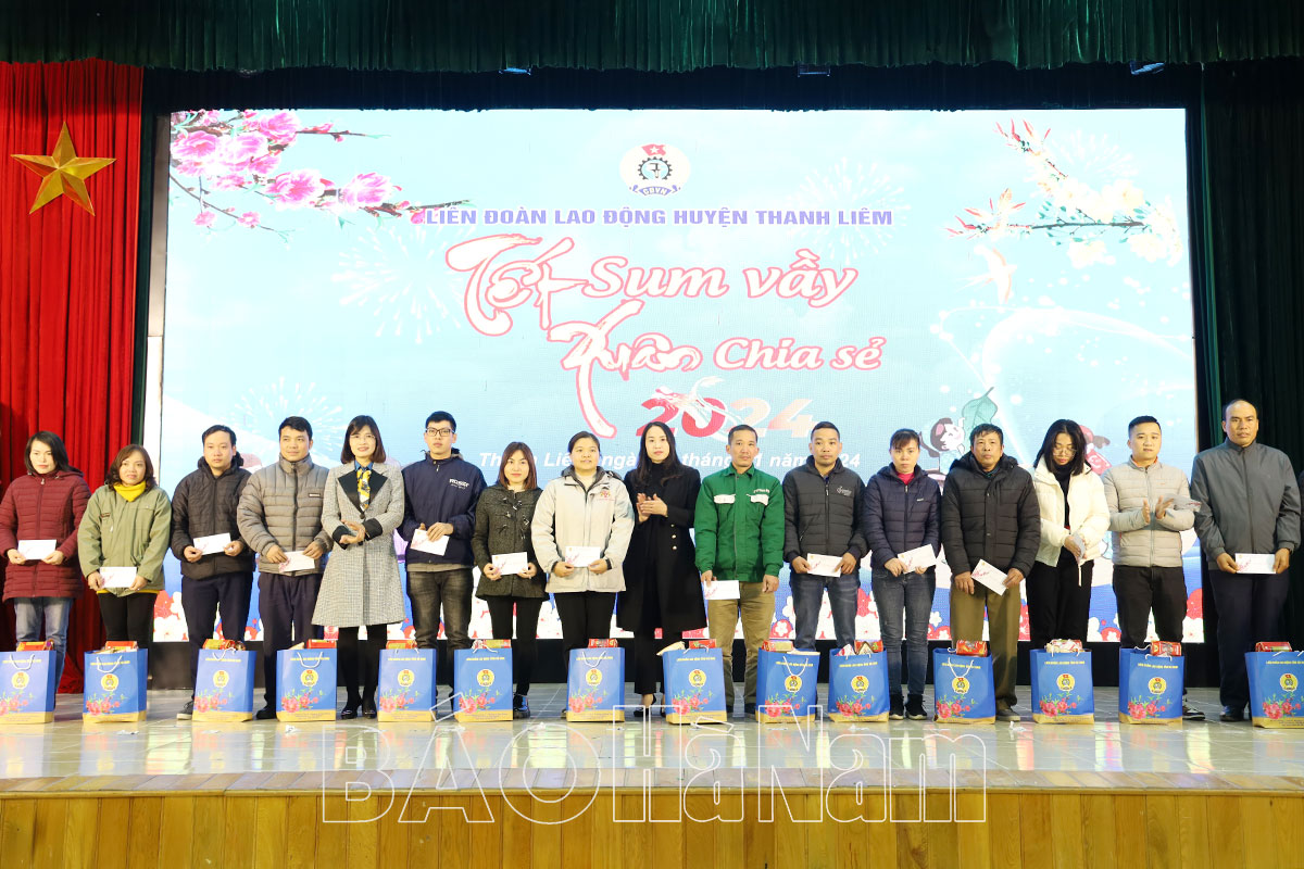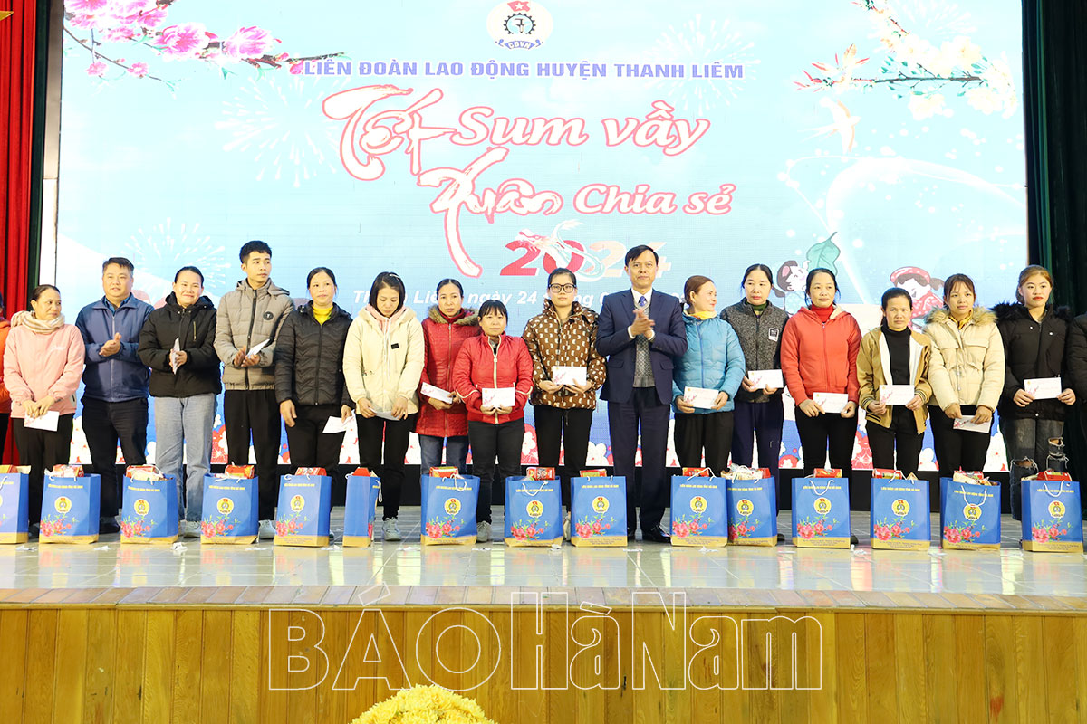Chiều 24/1, Liên đoàn Lao động (LĐLĐ) huyện Thanh Liêm tổ chức Chương trình “Tết sum vầy – Xuân chia sẻ” năm 2024. Dự chương trình có lãnh đạo LĐLĐ tỉnh, huyện Thanh Liêm, cùng đông đảo người lao động được tặng quà.
