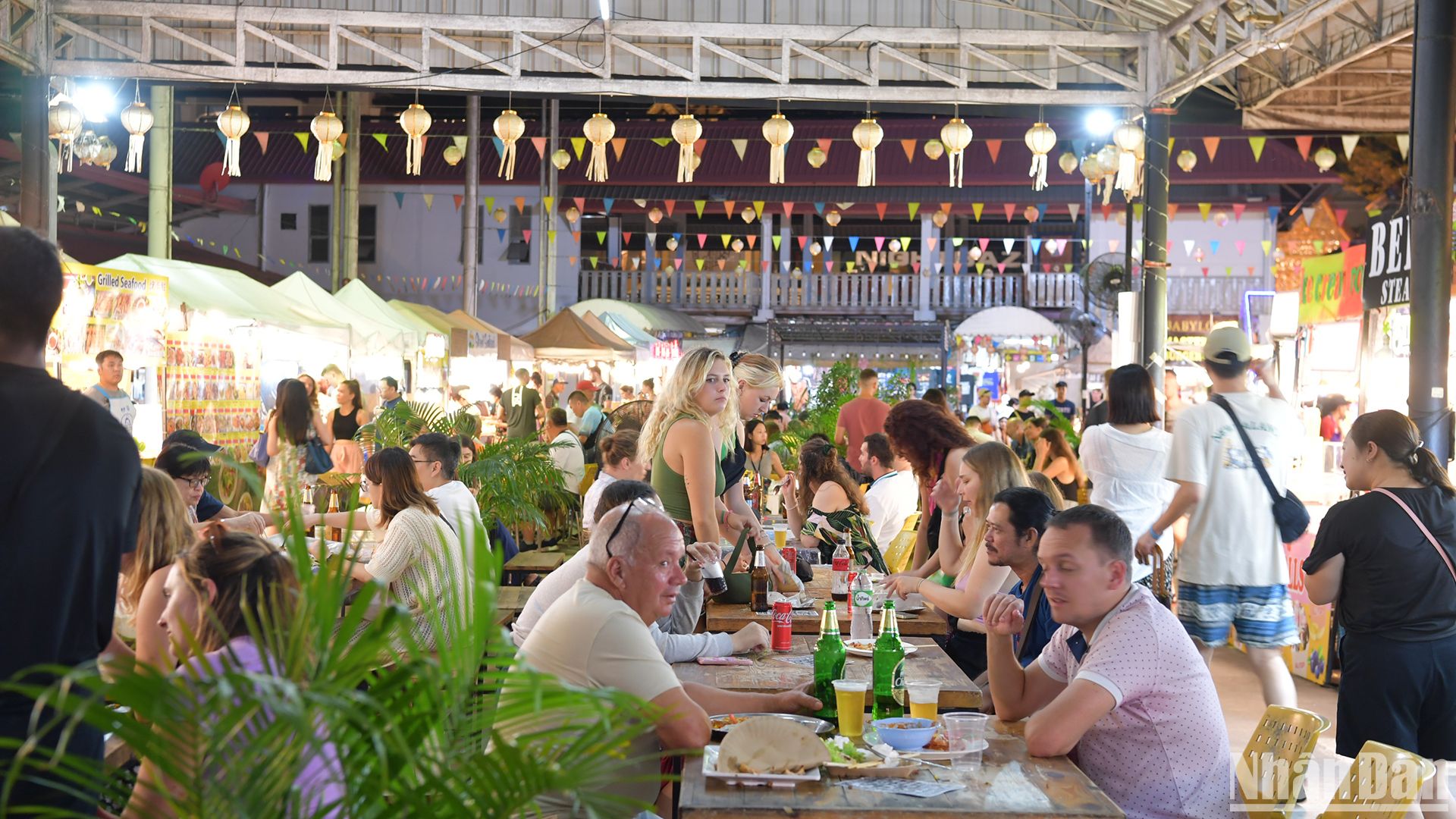 Du khách ăn uống tại khu chợ đêm Kalare ở Chiang Mai, Thái Lan. (Ảnh: ĐINH TRƯỜNG)