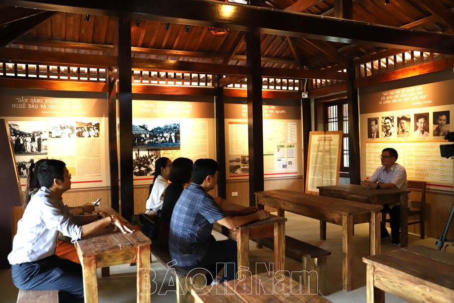 Nằm ở trung tâm Di tích là Nhà trưng bày về Trường dạy làm báo Huỳnh Thúc Kháng. Đó là căn nhà cấp 4 rộng 80m2 xây trên đồi cao, phỏng dựng theo tài liệu ghi chép và một số hình ảnh tư liệu để lại; xưa là nhà tre nứa, nay là nhà khung gỗ, mái lá nhân tạo chống cháy. Nhà trưng bày được thiết kế nổi bật với 10 vách đồ họa mang đậm phong cách “chiến khu”, gợi cho khách tham quan những cảm xúc bồi hồi, chân thực nhất về những nét chữ, gam màu thể hiện. Đó là những hình ảnh về Bác Hồ kính yêu, 2 bức thư mà Người gửi cho thầy trò của trường. Đó còn là những nét phấn ghi sĩ số lớp học, ngày khai giảng, bế giảng được thể hiện bằng đồ họa trên nền bảng đen như đưa chúng ta trở về với lớp học viết báo thân thương ngày đó. Suốt 3 tháng cùng ăn, cùng ở, cùng học, các học viên của Trường dạy làm báo Huỳnh Thúc Kháng trở nên thân thiết, gắn bó với nhau hơn bao giờ hết. Họ chia ngọt, sẻ bùi, động viên, giúp đỡ lẫn nhau để cùng tiến bộ.
