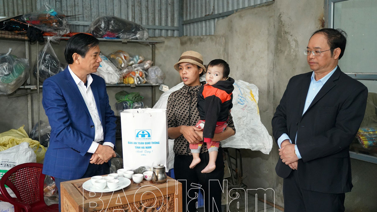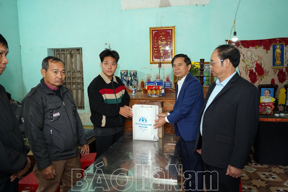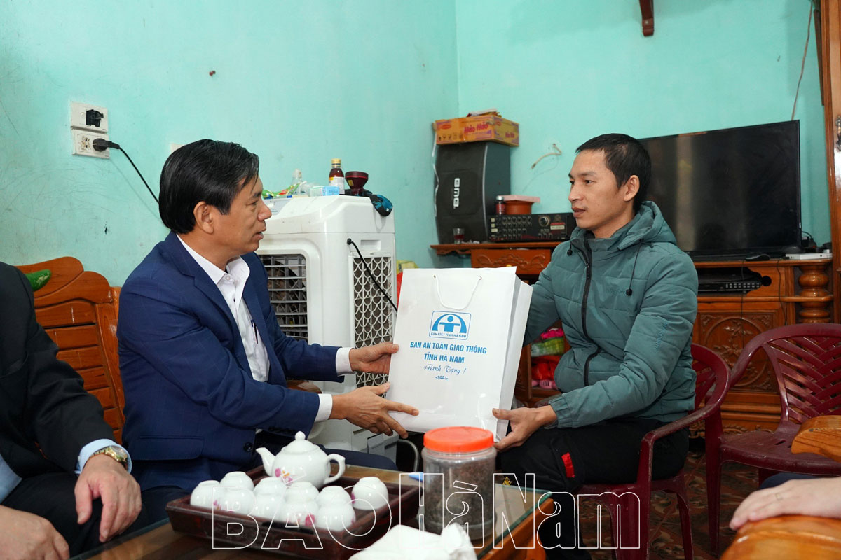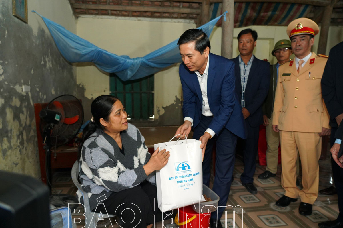 Theo đó, đoàn đã đến thăm các gia đình: bà Hoàng Thị Toan, thôn Hội Động 2, xã Đức Lý, là nạn nhân bị thương nặng do TNGT; anh Nguyễn Vũ Nam, thôn 4, xã Nhân Khang, bị tử vong do TNGT; vợ chồng anh Ngô Thanh Tú và chị Nguyễn Thị Diễm Uyên, thôn Hoàng Xuyên, xã Trần Hưng Đạo (huyện Lý Nhân) cả 2 nạn nhân bị tử vong do TNGT; gia đình anh Nguyễn Thế Hà (thôn Cát, xã Đinh Xá, thành phố Phủ Lý), anh Hà cùng 3 con nhỏ bị thương nặng trong một vụ va chạm với xe Container.