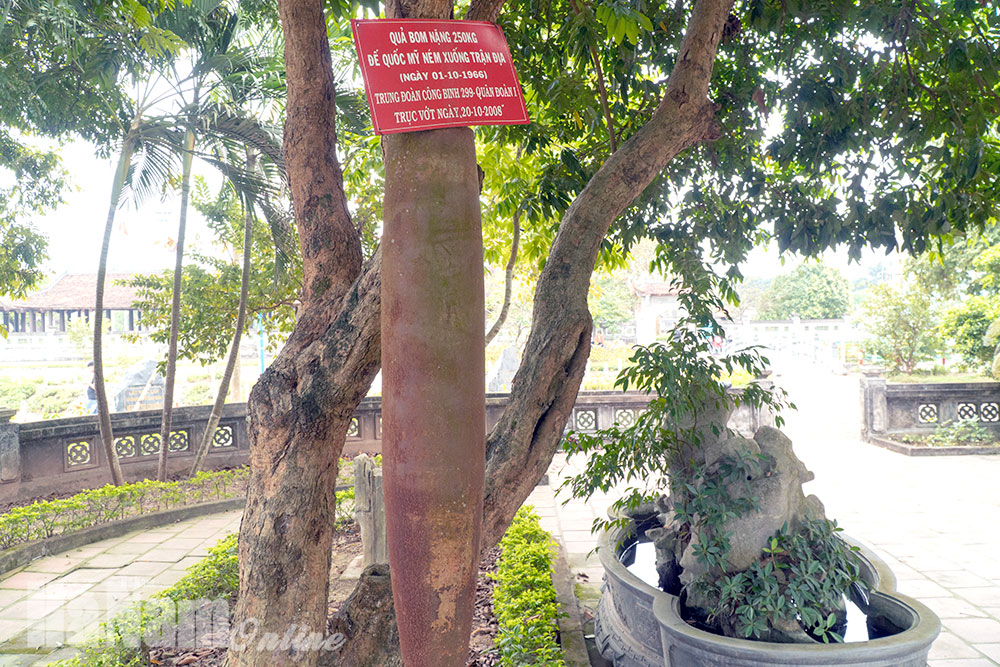 Quả bom nặng 250kg mà đế quốc Mỹ ném xuống trận địa ngày 1/10/1966 được Trung đoàn Công binh 299 - Quân đoàn I trục vớt ngày 20/10/2008 hiện đang được treo trong khuôn viên Đền thờ 10 nữ dân quân Lam Hạ.