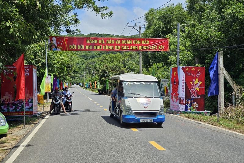 Những ngày tháng 7, thời điểm được coi như “Tết” của sự tri ân với những công lao to lớn của các anh hùng liệt sĩ, thế hệ cha anh đã dũng cảm hy sinh vì sự độc lập của dân tộc, sự trường tồn của Tổ quốc, không khí tại Côn Đảo lại càng trở nên đặc biệt. Hai bên những trục đường chính, các băng rôn, biểu ngữ với những nội dung ý nghĩa, các hàng cờ Tổ quốc, cờ Đảng tung bay phấp phới như càng tô điểm thêm cho vẻ đẹp vốn có của Côn Đảo.