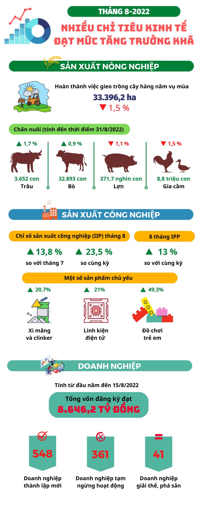 Tháng 8/2022: Nhiều chỉ tiêu kinh tế đạt mức tăng trưởng khá