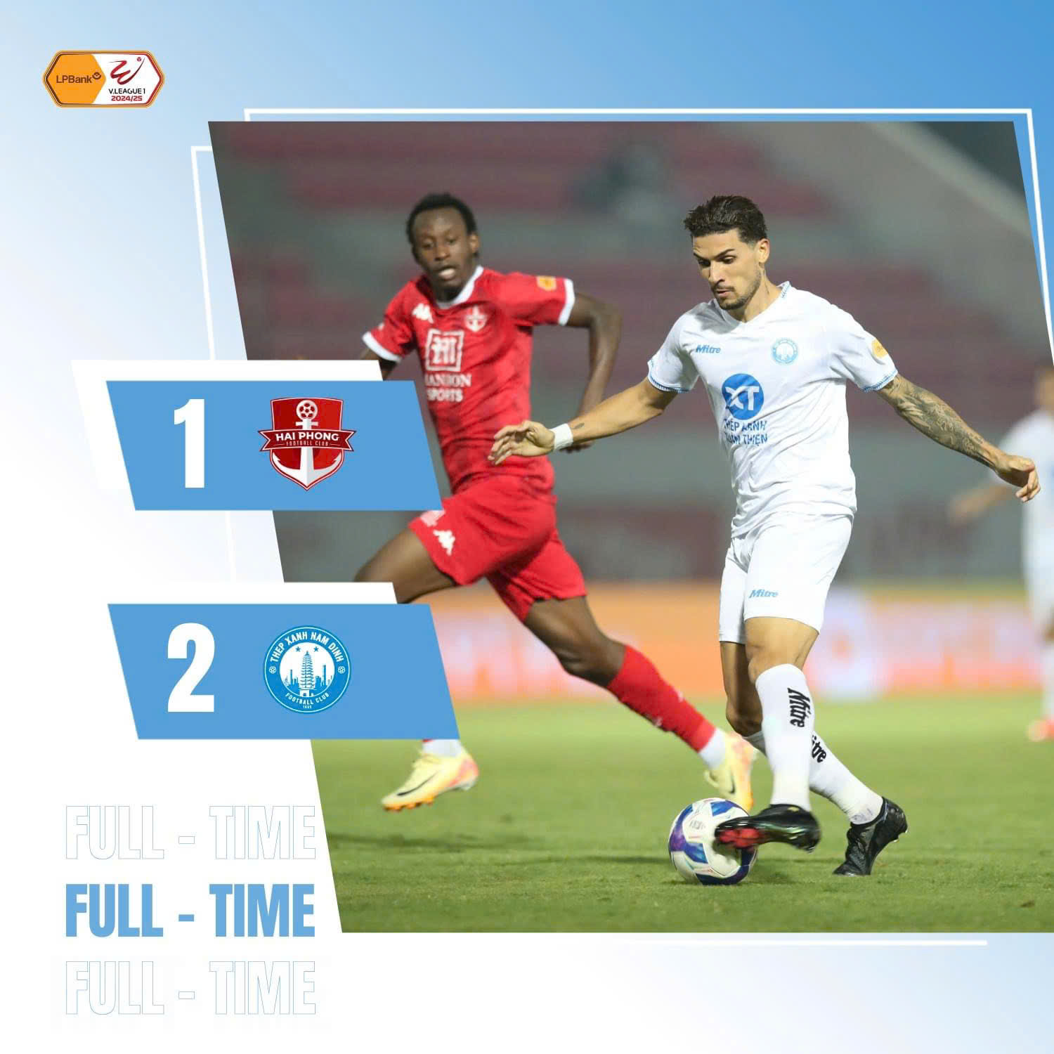 | Trận đấu kết thúc với tỉ số 2-1 thuộc về Nam Định. |