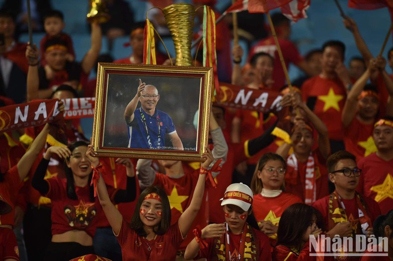 Niềm vui của các cổ động viên Việt Nam trên sân Mỹ Đình.