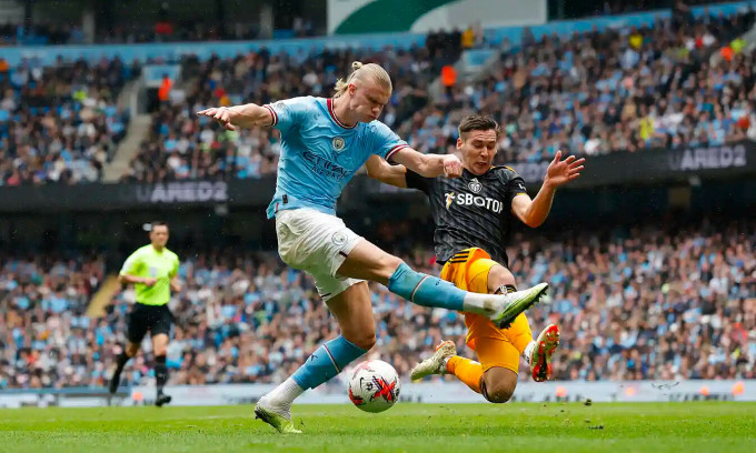 Dù chỉ thắng sát nút đội đua trụ hạng như Leeds, Man City không cho thấy dấu hiệu sa sút với mạch 10 trận thắng. Họ đã có thể giải quyết trận đấu sớm hơn nhiều, nếu Erling Haaland và đồng đội không phung phí cơ hội, đặc biệt tình huống ở phút 84. Chủ nhà hưởng phạt đền sau khi Phil Foden bị phạm lỗi trong cấm địa. Dù HLV Guardiola chỉ đích danh Haaland sút phạt, tiền đạo Na Uy lại cầm bóng đưa cho Gundogan để lập hat-trick. Tiền vệ người Đức sút dội cột dọc bật ra, để rồi Rodrigo ghi bàn cho Leeds sau đó chưa đầy một phút.