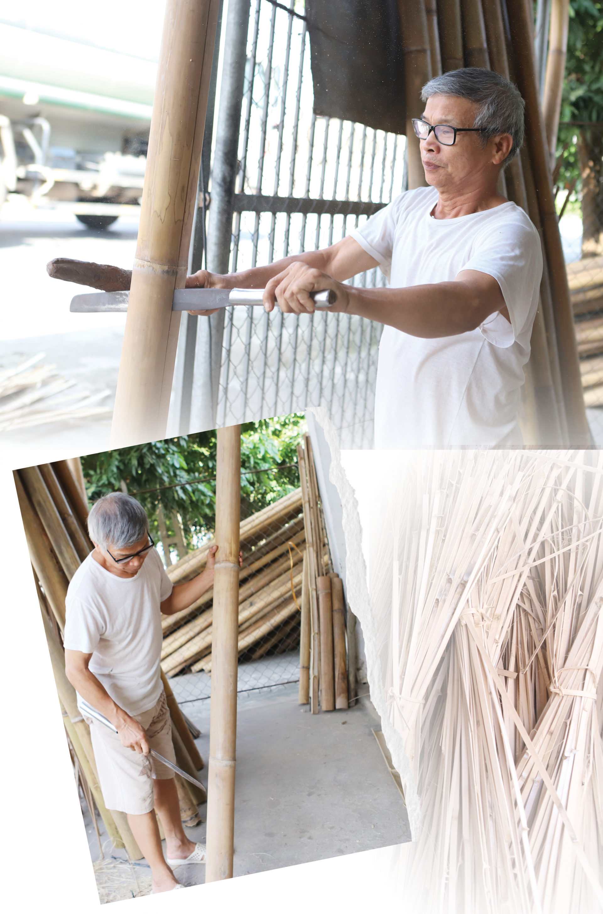 | Những cây tre, cây nứa được chẻ thành những chiếc nan nhỏ, vót trơn |