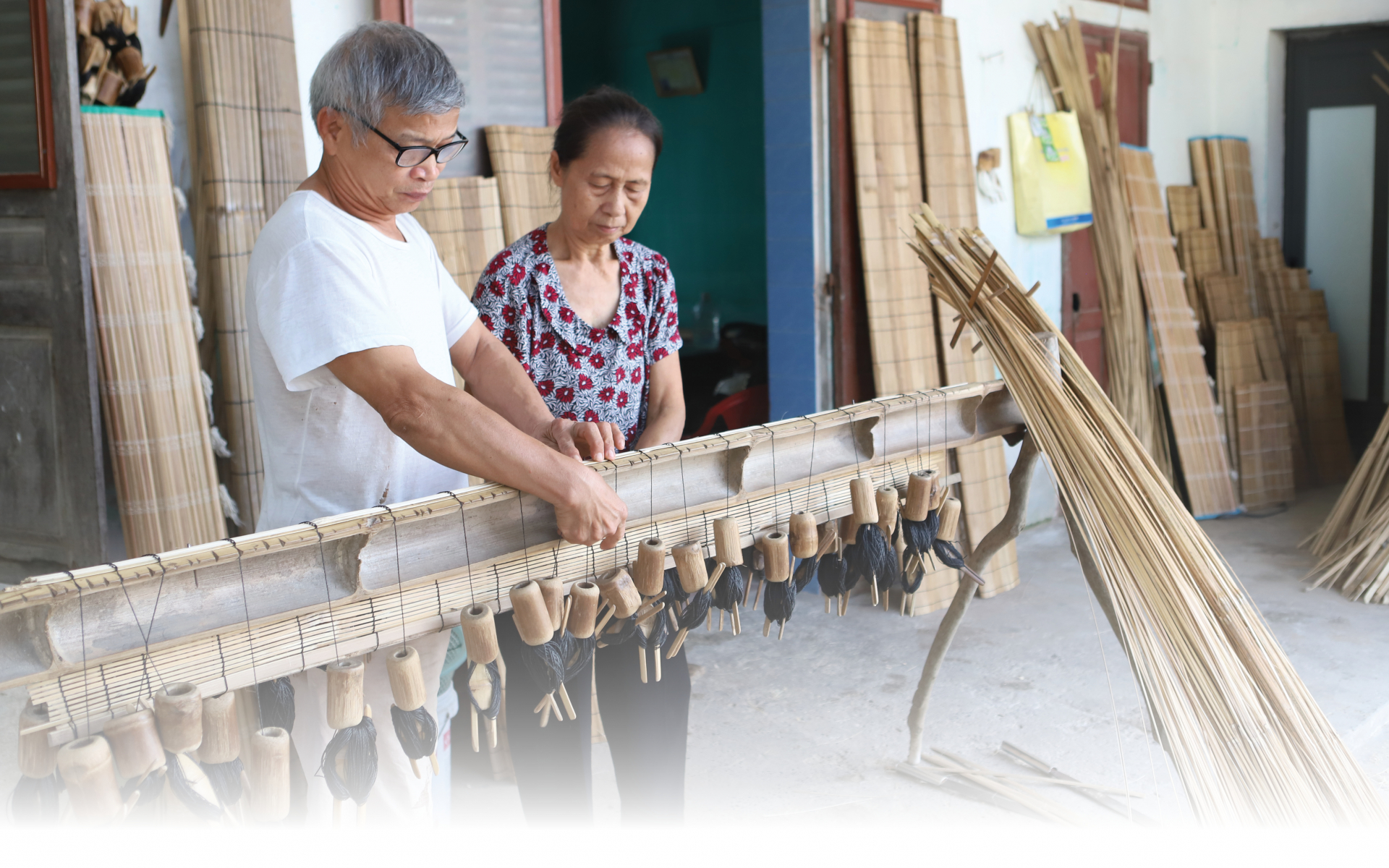 | Gia đình ông Đỗ Duy Sờn ở làng Đỗ Xá là đời thứ 15 của gia đình đến nay vẫn giữ nghề làm mành mành. |