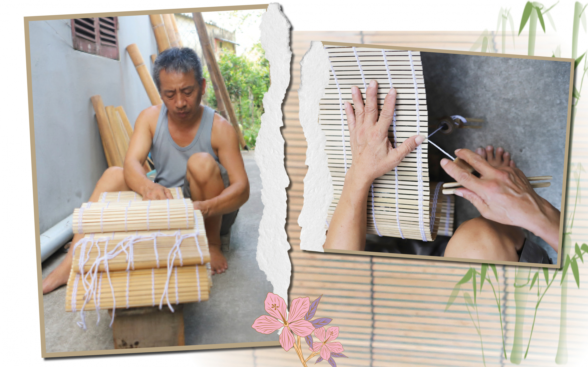 | Làm mành là nghề thủ công, mọi công đoạn từ cưa nứa, chẻ nan, đan mành đều cần đến đôi bàn tay khéo léo, tỉ mỉ của người thợ. |