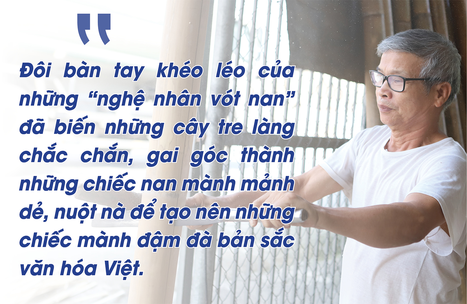 | Mành có đẹp, nan có đều hay không lại hoàn toàn phụ thuộc vào đôi bàn tay vừa khoẻ, vừa khéo của người chẻ nan. |