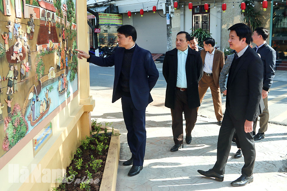 Các đồng chí lãnh đạo Tỉnh đoàn, Thành ủy, UBND thành phố Phủ Lý thăm công trình thanh niên Con đường Gốm (tuyến đường Lê Công Thanh, phường Minh Khai, thành phố Phủ Lý).Đại diện các cụm thi đua ký giao ước thi đua đặc biệt chào mừng kỷ niệm 90 Ngày thành lập Đoàn TNCS Hồ Chí Minh.