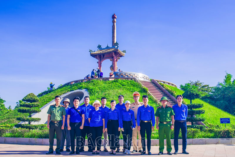 Cán bộ Đoàn TNCS Hồ Chí Minh thành phố Phủ Lý chụp ảnh lưu niệm khi đến thăm Thànhcổ Quảng Trị.