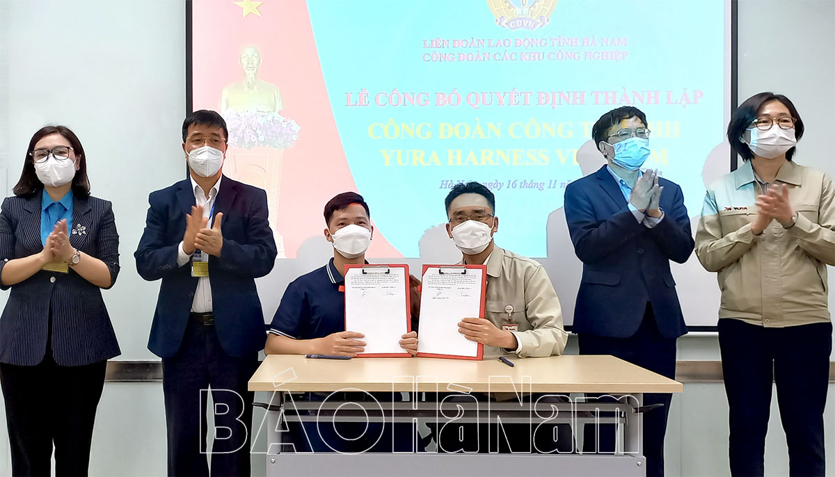 Chiều 16/11, Công đoàn các Khu Công nghiệp tỉnh tổ chức công bố quyết định thành lập Công đoàn cơ sở Công ty TNHH Yura Hamess Việt Nam (KCN Châu Sơn, TP.Phủ Lý).