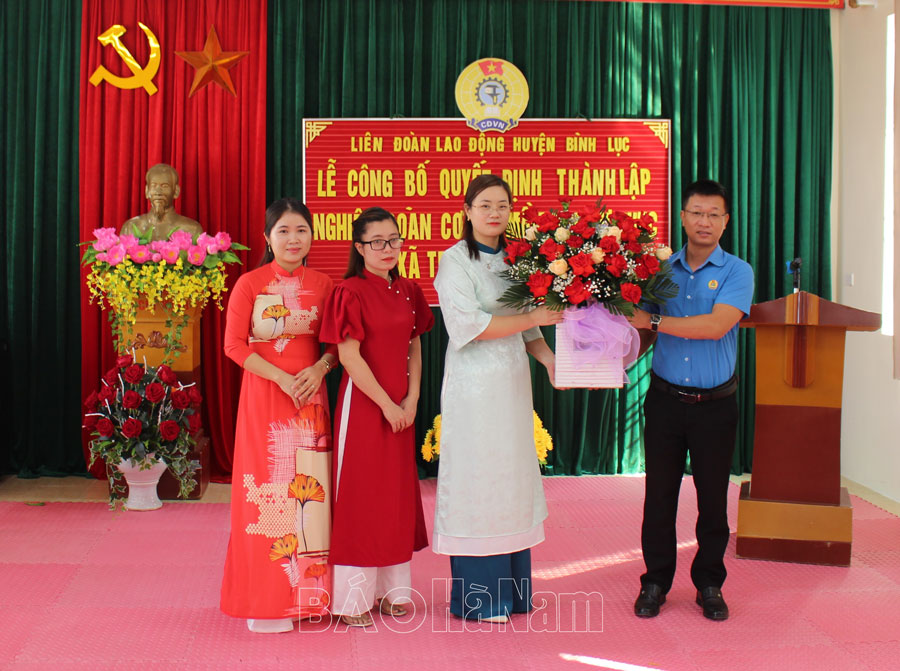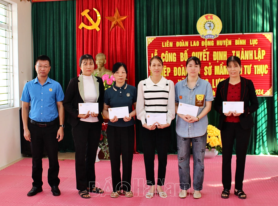Nhân dịp này, LĐLĐ tỉnh Hà Nam, LĐLĐ huyện Bình Lục đã tặng hoa chúc mừng Nghiệp đoàn cơ sở Trường Mầm non tư thục xã Trung Lương; trao quà động viên 5 đoàn viên hoàn cảnh khó khăn.