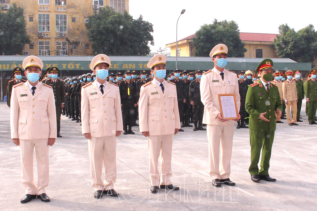 Trung tướng Phạm Quốc Cương, Anh hùng lực lượng vũ trang, Tư lệnh Bộ Tư lệnh Cảnh sát cơ động, Bộ Công an trao Quyết định thành lập Tiểu đoàn Cảnh sát dự bị cơ động chiến đấu, Công an tỉnh Hà Nam.Một tiết mục biểu diễn võ thuật của CBCS Tiểu đoàn Cảnh sát cơ động dự bị chiến đấu Công an tỉnh.