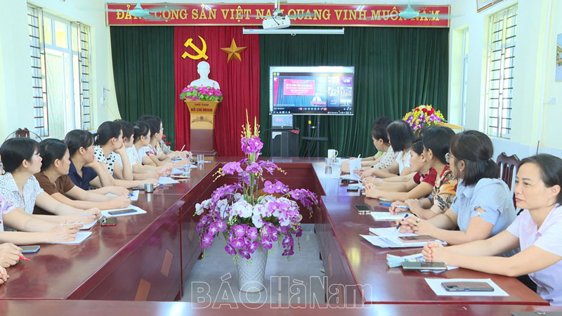 Cán bộ, giáo viên Trường Mầm non xã Thanh Hà tham dự lớp tập huấn tại điểm cầu nhà trường.