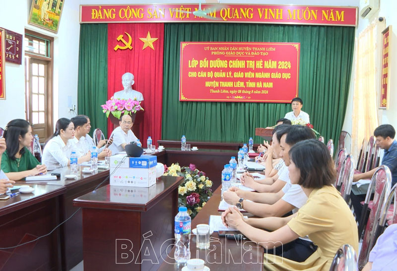 Sáng 8/8, Phòng Giáo dục và Đào tạo huyện Thanh Liêm tổ chức lớp bồi dưỡng chính trị hè năm 2024 cho cán bộ quản lý, giáo viên ngành giáo dục. Hội nghị được truyền hình trực tiếp tại điểm cầu phòng giáo dục huyện và trực tuyến tới 51 điểm cầu các nhà trường trên địa bàn huyện.
