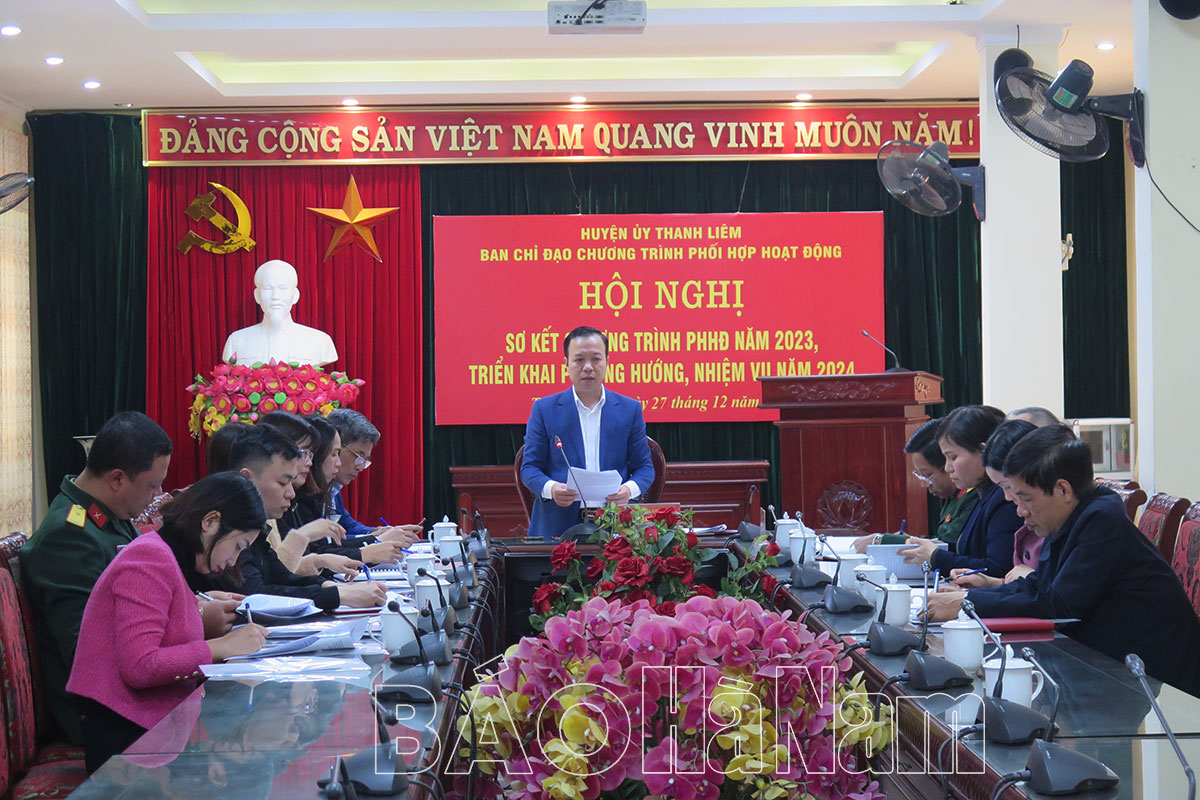 Chiều 27/12, Ban chỉ đạo chương trình phối hợp hoạt động (PHHĐ) huyện Thanh Liêm tổ chức sơ kết chương trình PHHĐ năm 2023, triển khai chương trình PHHĐ năm 2024.