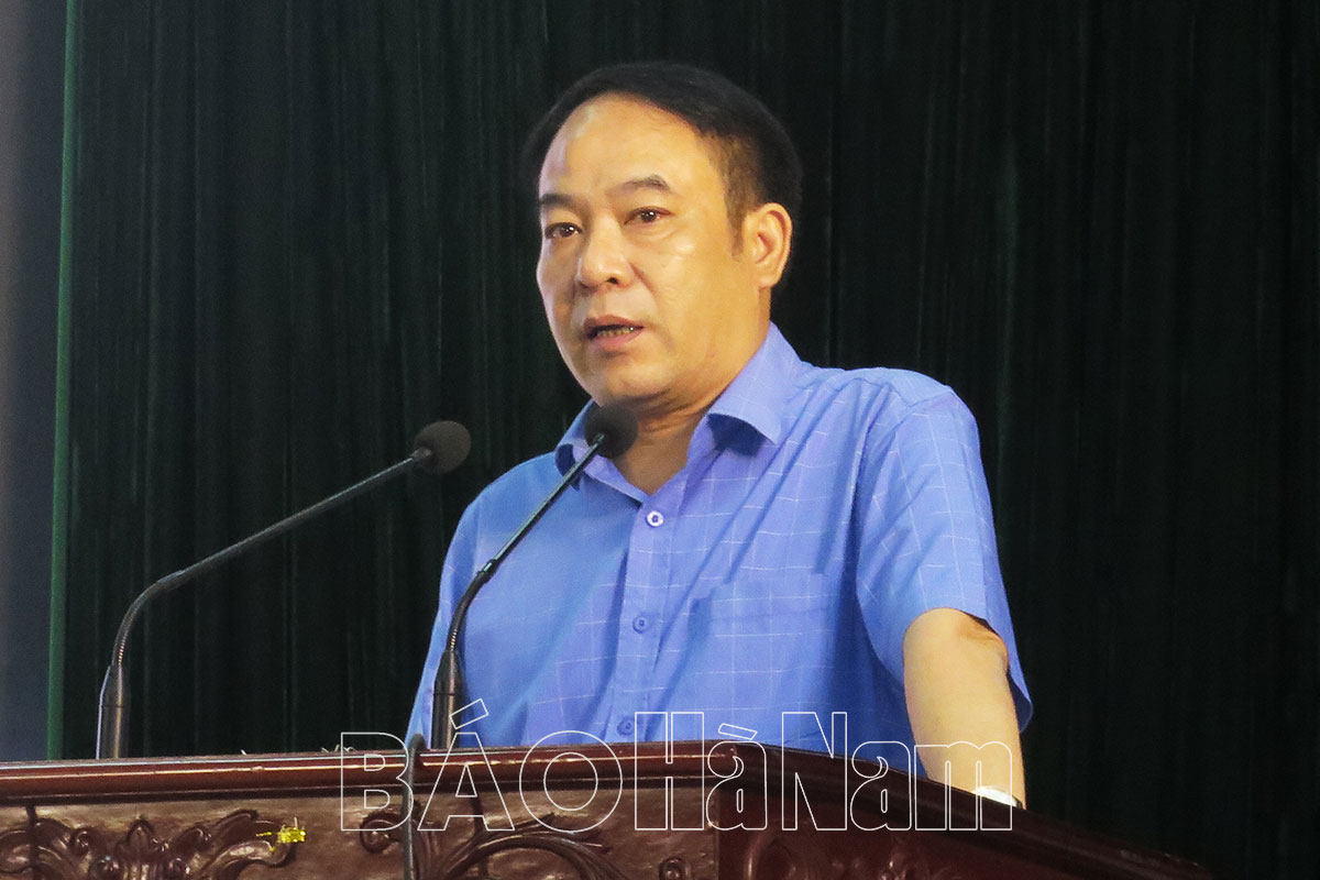 Đồng chí Hoàng Mạnh Dũng, Phó Bí thư Huyện uỷ, Chủ tịch UBND huyện Thanh Liêm phát biểu chỉ đạo tại hội nghị.