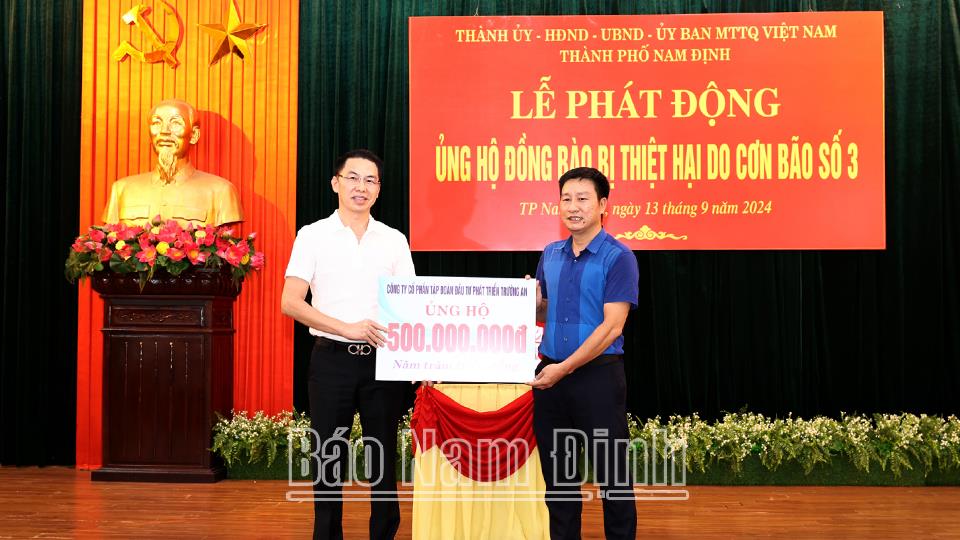 Tại Lễ phát động, các đồng chí lãnh đạo Thành ủy, HĐND, UBND và đại diện các phòng, ban, cơ quan, tổ chức thuộc thành phố đã ủng hộ đồng bào bị thiệt hại do cơn bão số 3; Ủy ban MTTQ thành phố đã tiếp nhận số tiền ủng hộ 500 triệu đồng từ Công ty Cổ phần Tập đoàn đầu tư phát triển Trường An; tiếp nhận số tiền 20 triệu đồng từ Hiệp hội Cơ khí nhôm kính tỉnh Nam Định.