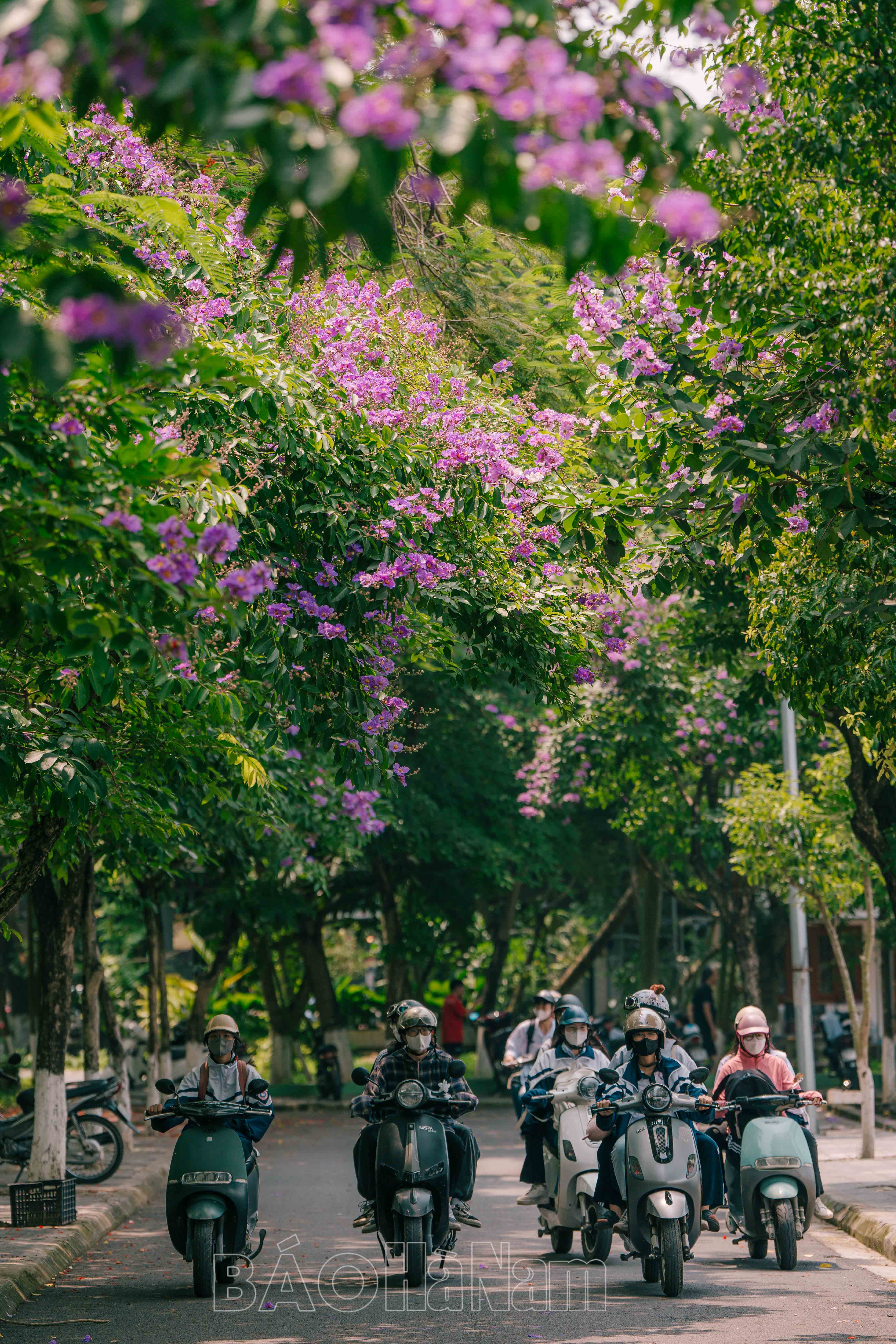 Những ngày đầu hạ, trên những tuyến phố ở Phủ Lý, hàng bằng lăng nở rộ phủ kín cả con đường. Đường phố như được khoác lên mình tấm áo mới, ánh nắng mặt trời chiếu rọi qua những cánh hoa bằng lăng, làm cho chúng trở nên rực rỡ, đầy sức sống hơn.