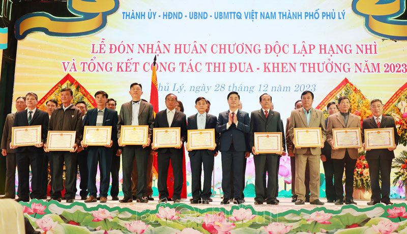 Sáng ngày 28/12, Thành ủy, HĐND, UBND, Ủy ban MTTQ thành phố Phủ Lý long trọng tổ chức Lễ đón nhận Huân chương Độc lập hạng Nhì và tổng kết công tác thi đua, khen thưởng năm 2023.