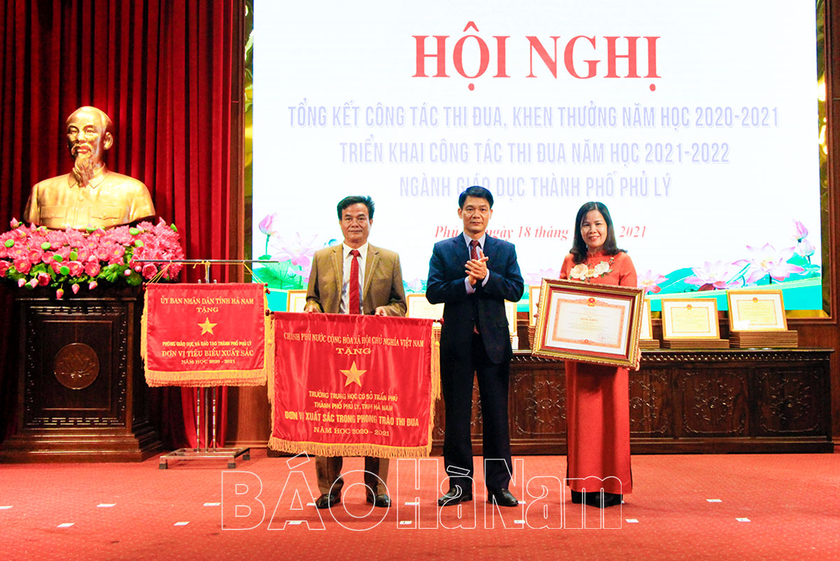 Đồng chí Nguyễn Đức Toàn, Ủy viên BTV Tỉnh ủy, Bí thư Thành ủy Phủ Lý trao Cờ thi đua xuất sắc của UBND tỉnh cho các tập thể.Đồng chí Nguyễn Đức Toàn, Ủy viên BTV Tỉnh ủy, Bí thư Thành ủy Phủ Lýtrao Cờ thi đua xuất sắc và Bằng khen của Thủ tướng Chính phủ cho các tập thể và cá nhân xuất sắc trong PTTĐ ngành giáo dục thành phố năm học 2020-2021.