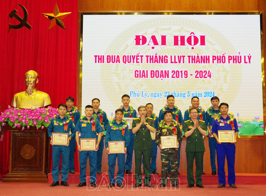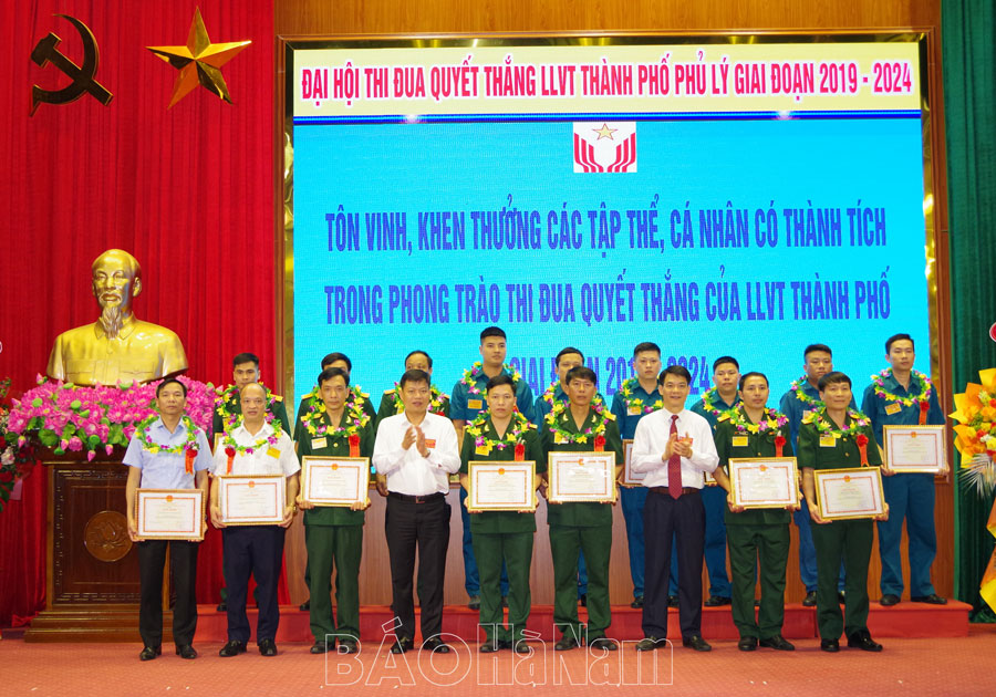 Lãnh đạo thành phố Phủ Lý khen thưởng các tập thể, cá nhân tiêu biểu trong phong trào thi đua Quyết thắng.