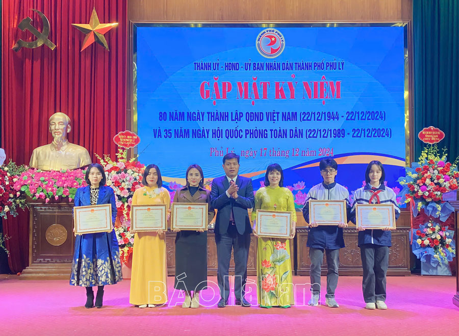 Nhân dịp này, thành phố Phủ Lý đã trao thưởng cho 10 tập thể và 16 cá nhân có thành tích xuất sắc trong tổ chức và tham gia các hoạt động kỷ niệm 80 năm thành lập Quân đội nhân dân Việt Nam.