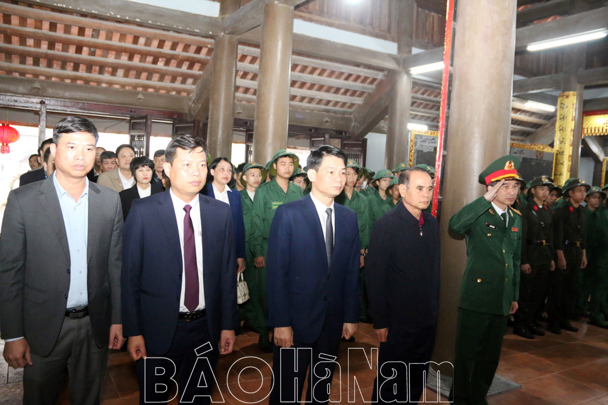 Với chủ đề “Tuổi trẻ xung kích, sáng tạo, xây dựng và bảo vệ Tổ quốc”, “Ngày hội tòng quân” được tổ chức với chuỗi hoạt động mang nhiều ý nghĩa thu hút đông đảo đoàn viên, thanh niên (ĐVTN) và các tầng lớp nhân dân tham gia. Mở đầu ngày hội, các đại biểu cùng toàn thể thanh niên diện trúng tuyển NVQS, nghĩa vụ công an năm 2024 đã dâng hương tưởng niệm các anh hùng liệt sĩ tại Đền thờ các anh hùng Liệt sĩ tỉnh và Đền thờ 10 nữ Liệt sĩ dân quân Lam Hạ.
