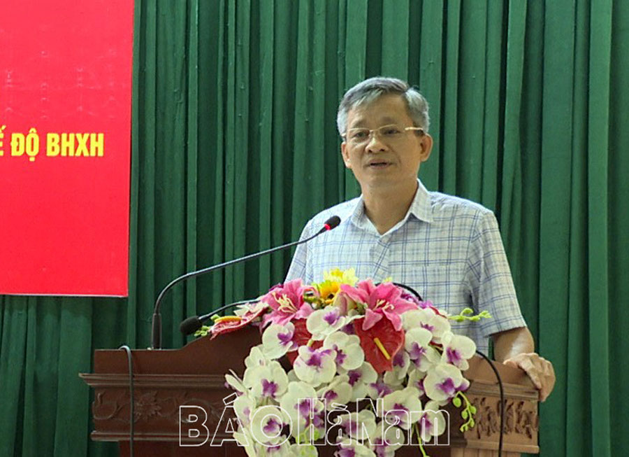 Đại diện lãnh đạo BHXH tỉnh phát biểu tại hội nghị.