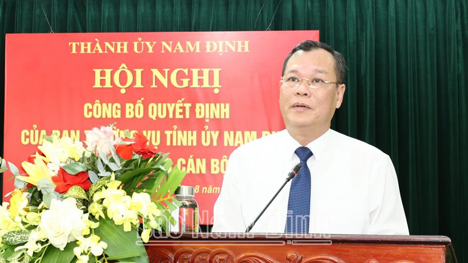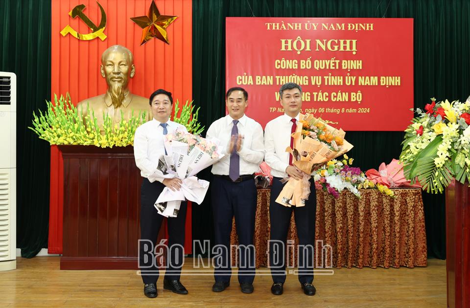 Tại hội nghị, lãnh đạo Ban Tổ chức Tỉnh ủy công bố Quyết định số 1172-QĐ/TU, ngày 5/8/2024 của Ban TVTU về việc đồng chí Nguyễn Tiến Dũng, Ủy viên BCH Đảng bộ tỉnh, Giám đốc Sở Văn hóa, Thể thao và Du lịch thôi giữ chức vụ Giám đốc Sở Văn hóa, Thể thao và Du lịch để phân công, luân chuyển, chỉ định tham gia BCH Đảng bộ thành phố, Ban Thường vụ Thành ủy, giữ chức vụ Phó Bí thư Thành ủy Nam Định nhiệm kỳ 2020-2025 từ ngày 6/8/2024 và giới thiệu ứng cử giữ chức vụ Chủ tịch UBND thành phố Nam Định nhiệm kỳ 2021-2026.