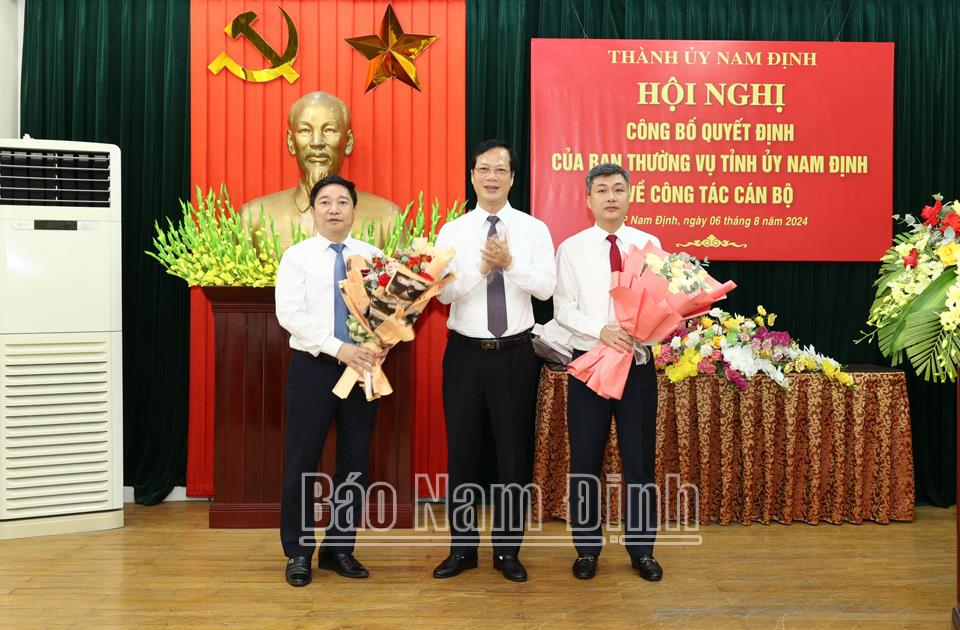 Sáng 6/8, Thành ủy Nam Định tổ chức công bố Quyết định của Ban TVTU về công tác cán bộ. Các đồng chí: Lê Quốc Chỉnh, Phó Bí thư Thường trực Tỉnh ủy, Chủ tịch HĐND tỉnh, Trưởng đoàn Đoàn đại biểu Quốc hội tỉnh; Nguyễn Anh Tuấn, Ủy viên Ban TVTU, Bí thư Thành ủy, Chủ tịch HĐND thành phố Nam Định; lãnh đạo Ban Tổ chức Tỉnh ủy, Sở Văn hóa, Thể thao và Du lịch tới dự.