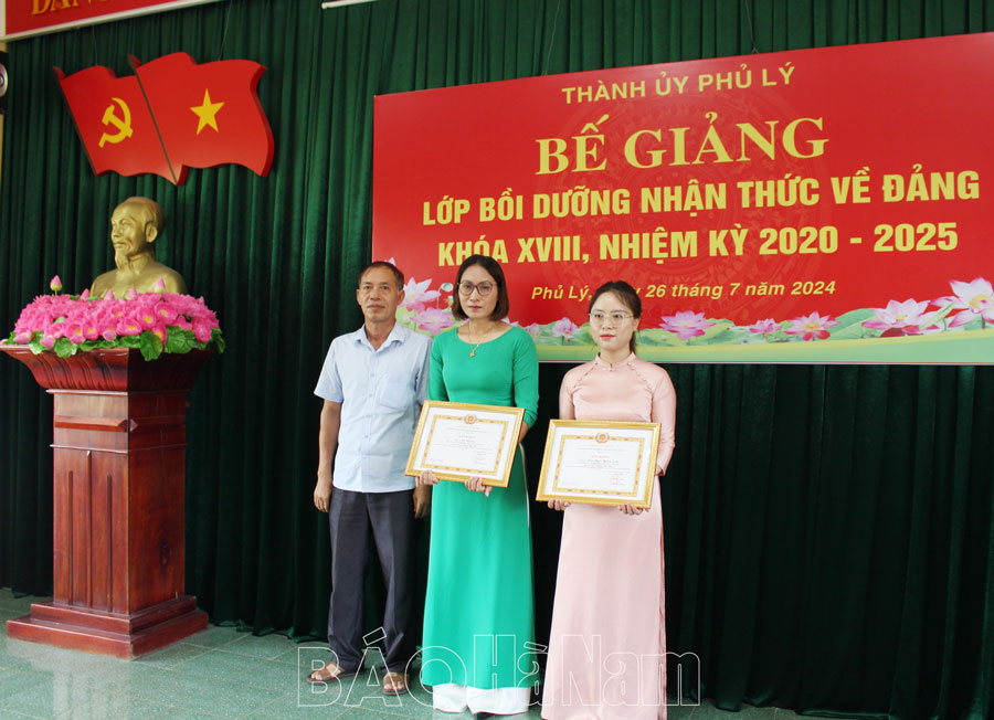 Ngày 26/7, Trung tâm Chính trị thành phố Phủ Lý phối hợp với các Ban xây dựng Đảng Thành uỷ tổ chức bế giảng lớp bồi dưỡng nhận thức về Đảng khoá XVIII, nhiệm kỳ 2020 – 2025 dành cho những quần chúng ưu tú của các chi, đảng bộ cơ sở trực thuộc Thành uỷ.