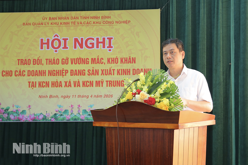 Ngày 11/4, Ban Quản lý Khu kinh tế và các khu công nghiệp (KCN) tỉnh tổ chức Hội nghị trao đổi, tháo gỡ vướng mắc, khó khăn cho các doanh nghiệp đang sản xuất kinh doanh tại KCN Hòa Xá và KCN Mỹ Trung.